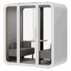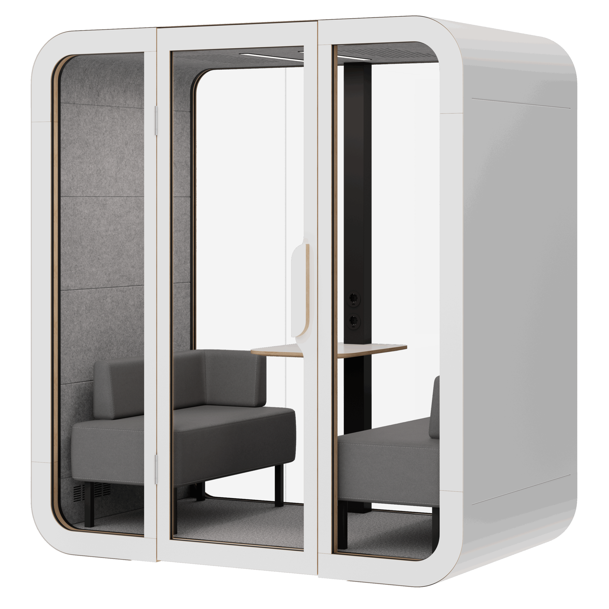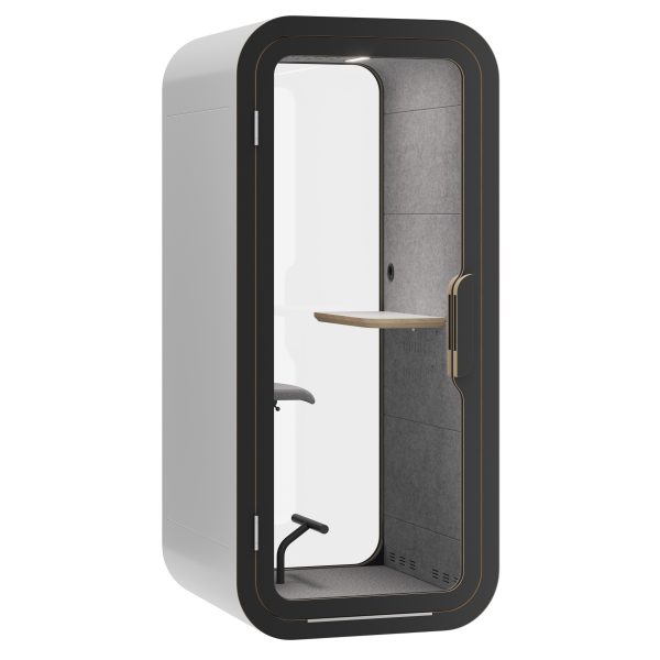 Белый металлический корпус, белая рамка и скругленные плавные формы делают кабину идеально вписывающейся в любой офисный интерьер.